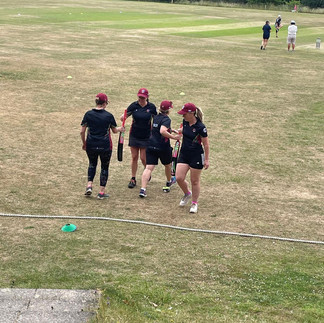 Susie & Lucie were next in to bat. Getting 4 off the first ball was becoming a habit! They followed this with some well-run singles. Waiting was key as the bowlers struggled to bring consistency and several wides were notched up. A potential catch was dropped at silly mid wicket followed by a 4 off the next ball for Lucie and when she hit her second boundary, she was dancing in the wicket - a well-deserved celebration!